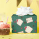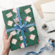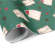 Wrapping paper with Christmas pattern of vintage letters and envelopes tied with string. Cute watercolor seamless pattern with postage stamps on a dark green background. Beautiful Christmas or New Year pattern for wrapping and decorating winter holiday gifts