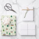 Wrapping paper with a winter landscape - snowflakes falling on little houses surrounded by fir trees.
