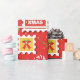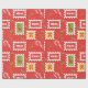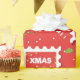 seamless pattern with postage stamps, cone caramel and Reindeer. Christmas pattern in red and green colours.