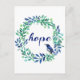 Nature Themed Post Card: Motivational Quote "Hope"/Wreath And Bird Design/Trendy Script Typography