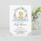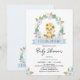 Wreath Blue Floral Baby Lion Baby Shower Invitation