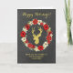 Happy Holidays Christmas business greeting card for clients and staff in rustic chalkboard pattern with red and white vintage floral wreath and gold deer, wish your customers and employees well this holiday season with this fun greeting card.