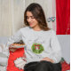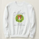 Rustic and modern holiday theme shirt featuring watercolor illustration of green wreath with a red bow. The text says "merry" in script font with a heart.