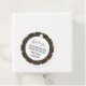 Customisable favour tag features a floral wreath on both sides with message, names and date on the front.