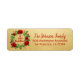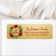 Elegant and classy return labels for Christmas (Xmas) Holiday greeting cards. Red letters with Christmas Wreath. Modern letters for family name and address. Letter colour and font can be changed. Background colour is faux gold foil.