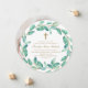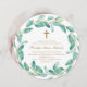 Botanical Eucalyptus Leaves with Cross Religious Baptism Invitation with Photo.