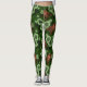 Wren and hellebore on dark green leggings
