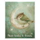 Wren bird baby sleeping on Moon design with quote "Moon guides to dreams" makes perfect gift for newborn or new baby nursery decoration.