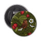 Wrens and strawberries on dark green bottle opener