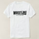 This white t-shirt features the word "WRESTLING" in a bold, stylised black font with a dynamic, angled appearance. Below it, in a smaller, simple black font, is the phrase "LEAVE IT ALL ON THE MAT." The design is straightforward and motivational for wrestling enthusiasts.