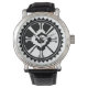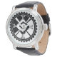 Wristwatch face with design inspired by ancient Mayan Hunab Ku deity.