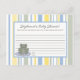 These adorable Leap Frog Turtle Bee Dragonfly Pond Animal Writable Advice Cards are perfect addition to any baby shower or birthday party. Simply hand these cards to your guests, along with fine tip Sharpie pens. Your guests can then write down any advice they have for the new mummy to be or for the birthday boy or girl. These are printed at a 4.25" x 5.6" size on glossy ultra heavyweight 120 lb. cover stock (card stock). We have an entire line devoted to this design here at zazzle store under the * Design Collections menu tab to include invitations (5x7), Return Labels, Mailing Labels, Envelope Seals, Postage Stamps, Cup Cake Picks, Water Bottle Wrappers, Hershey's 1.55 oz. Large Bar Wrappers, Hershey's Miniature Stickers, Microwave Popcorn Bag Wrappers, Writable Place Cards, Goody Bag Toppers, FLAT Thank You Cards (4x5), FOLDED Thank You Cards (4x5), Favour Tags, Menu Cards, Mint Matchbooks, Lollipop Covers, Bookmarks, Bingo Cards, Bingo Card Markers, Bingo Card Call Out Sheets, Writable Advice cards (4x5), etc.