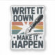 A motivational retro design for planner lovers and journalling enthusiasts! Featuring the bold phrase “Write It Down, Make It Happen” with a classic fountain pen illustration, this design is perfect for planner girls, bullet journal fans, writers, and anyone who loves turning dreams into plans. Great for adding positive vibes to your day.