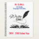 This great notebook is set up as a planner for a teacher's academic school year - easily update the place holder text on the front. It features an old fashioned writing pen coupled with an open book. The catchy phrase says "Write on!"