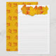 Lined writing paper with leaves along the top. Lined, white paper with seasonal maple leaves design.