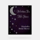 Written in the stars bridal shower. Silver moon and stars against a dark midnight purple background