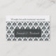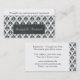 A business card template with a digital design of metallic effect dark grey or black leaf swirls and a metal-like nameplate. A strip of the design is repeated on the reverse with the address details. The card stock is the basic white coloured card, but can be easily changed to another colour or paper type.