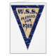 W.S.S., War Savings Stamps poster from the 1918. W.S.S. were the war bonds of the first world war. An inverted triangle with the words W.S.S. Pledged for 1918 in the centre. The design has been lightly distressed.