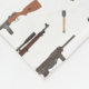A patterned vector drawing featuring American, British, Soviet and German WW2 rifles, automatic and AT weapons, pistols and machine guns.