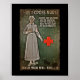 Fundraising image of nurse standing beside red cross quotation. Vintage World War One poster art