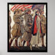 Group of WWI girls in uniform marching with the USA flag. Recruiting poster art for nurses and women's groups.
