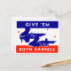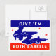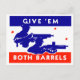 WWII patriotic print titled ' Give 'em Both Barrels ' depicting an American civilian at work in a munitions factory and an American solider on the front lines.