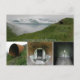 From the outside there doesn't seem to be much to the bunkers made of fortified concrete which were buried all over Unalaska Island to provide secure storage for weapons and safe shelter for troops. This bunker is located on Ulakta Head, which is the north end of Ballyhoo Mountain, and the headland faces the mouth of the bay. Fort Swatzka was built on Ulakta Head to provide a first line of defence for the military centre of operations for the Campaign of the Aleutians located in Dutch Harbour, Alaska. This bunker is one of many structures which are remnants of Fort Swatzka and which remain as a testimony that the Aleutian Islands were an important part of WWII in preventing invasion of the U. S. homeland. Detailed images of the entrance to the bunker and a view of its interior make up the bottom half of the card. In the background summer fog banks cover the Makushin Mountains on the west side of Unalaska Bay.