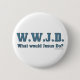 What Would Jesus Do? Christian slogan. A personal motto as a reminder that Jesus is the example to be followed in daily life, and to act in a manner of which Jesus would approve.
