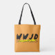 This versatile tote bag features **WWJD** in bold black lettering paired with a bright yellow script of "What Would Jesus Do," bringing modern energy to a timeless question. It’s a gentle yet powerful nod to empathy, kindness, and reflection — values we all could use more of.