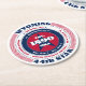 This paper coaster has a patriotic circular typography design with red, white, and blue colours representing the United States of America flag. The text includes the state's name Wyoming, its capital Cheyenne, its residents' name Wyomingites, the Rocky Mountains region, its time zone(s), and geographic coordinates. Wyoming was the 44th state to gain its statehood in 1890. It is represented with text as the "44th star" in this design. This paper coaster is great as a souvenir or for parties and businesses. All shape options are available, however, you may need to adjust the design size in the design tool to make it fit correctly.