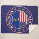 Badge of Wyoming with flag of Wyoming and flag of USA colours, rounded shape.
