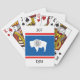These playing cards feature the beautiful state flag of Wyoming, with the red and white border, the sky blue background, and the white bison with the Wyoming State Seal. Above the image is the text 307 (anyone from Wyoming knows what that means!) and below it is your own monogram. Either can be removed by clearing the text field.
