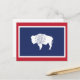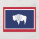This distinctive design features a deep dark blue field, symbolising the vast Wyoming sky, justice, and loyalty. At its heart, a magnificent white bison (or buffalo) stands prominently, representing the state's wildlife and its historical ties to the American West. A bold red border frames the bison, recalling the blood shed by pioneers and Native Americans. The bison itself is branded with the state seal, featuring a banner with the powerful motto "EQUAL RIGHTS," honouring Wyoming's legacy as the "Equality State.