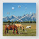 Wyoming, Teton Mountains, with Horses Grazing Square Wall Clock