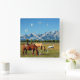 Beautiful Wyoming, Teton Mountains with three horses grazing in the foreground, wall clock.