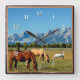 Wyoming, Teton Mountains, with Horses Grazing Square Wall Clock