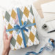 Xanadu and Gold Winter Argyle Wrapping Paper