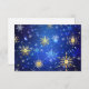 Blue Christmas background with gold and white jewelry snowflakes. Golden snowflakes. XMAS.