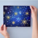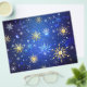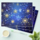 Blue Christmas background with gold and white jewellery snowflakes. Golden snowflakes. XMAS.