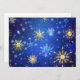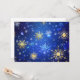 Blue Christmas background with gold and white jewellery snowflakes. Golden snowflakes. XMAS.