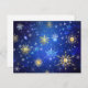 Blue Christmas background with gold and white jewellery snowflakes. Golden snowflakes. XMAS.