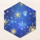 XMAS Blue Background with Golden Snowflakes Paper Coaster