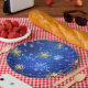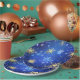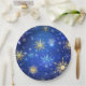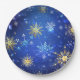 XMAS Blue Background with Golden Snowflakes Paper Plate