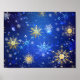 Blue Christmas background with gold and white jewellery snowflakes. Golden snowflakes. XMAS.
