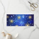 Blue Christmas background with gold and white jewellery snowflakes. Golden snowflakes. XMAS.