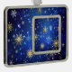 XMAS Blue Background with Golden Snowflakes Silver Plated Framed Ornament