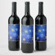 XMAS Blue Background with Golden Snowflakes Wine Label