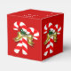 Red and white Christmas Candy with a rosette in gold and green leaves.