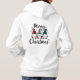 Three festive gnomes standing together, each with unique, playful features. The first gnome on the left has a red checker hat ,a long white beard, The middle gnome wears a white checker hat his beard peeking out from under the hat, The third gnome on the right is dressed in a Green checker hat, . surrounded by the words Merry Christmas