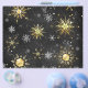 Black Christmas background with gold and black jewellery snowflakes. Golden snowflakes. Xmas.